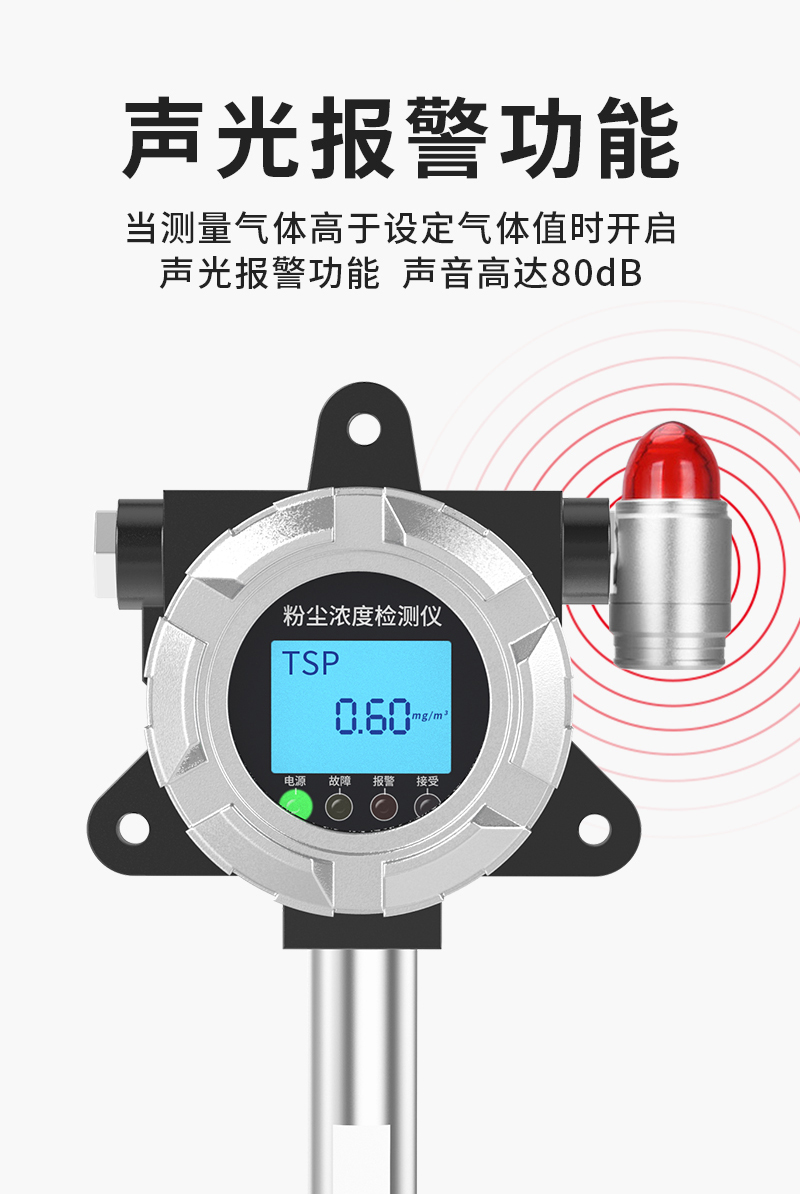 产品通过ExdIICT6防爆认证,适用于石油化工、煤矿冶金等高危场所的粉尘浓度实时监测。设备具有4-20mA/RS485标准信号输出,可无缝对接PLC、DCS等控制系统,实现粉尘浓度的远程监控和智能预警。