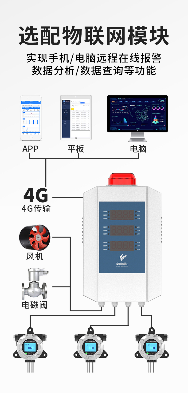 可在app和云平台查看实时数据、历史数据、导出数据等,同时具备24小时连续监测、超标报警、数据存储功能。