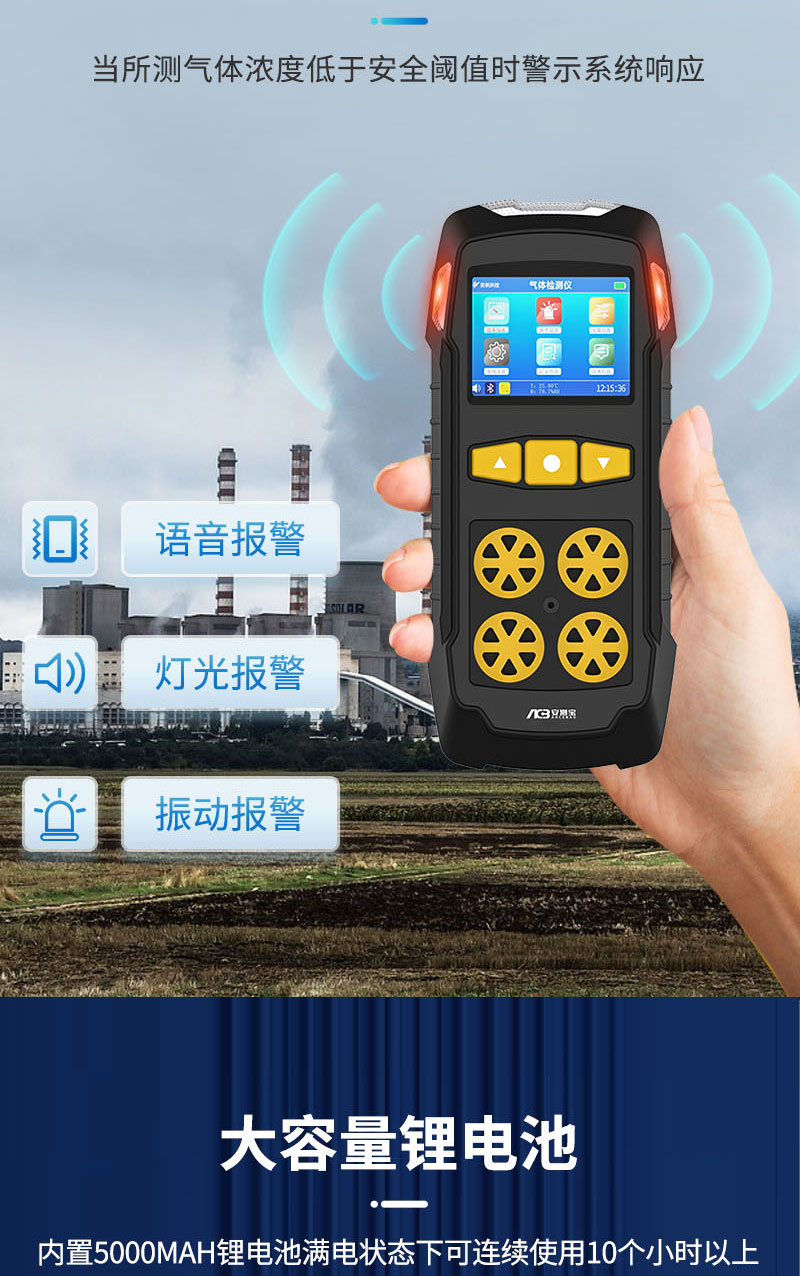该设备采用高精度传感器,响应速度快,测量精度高,稳定性强重复性好,可连续测量环境空气中的VOC、可燃气体有毒有害气体等气体。产品采用扩散式测量,内置滤网,防止大型颗粒物影响传感器和仪器。配置1.9寸液晶点阵屏幕显示实时浓度,电量。大容量存储历史数据,可存储十万条历史记录,1万条报警记录,支持本机查看。内置2000mAH大容量锂电池,可连续工作10小时以上。