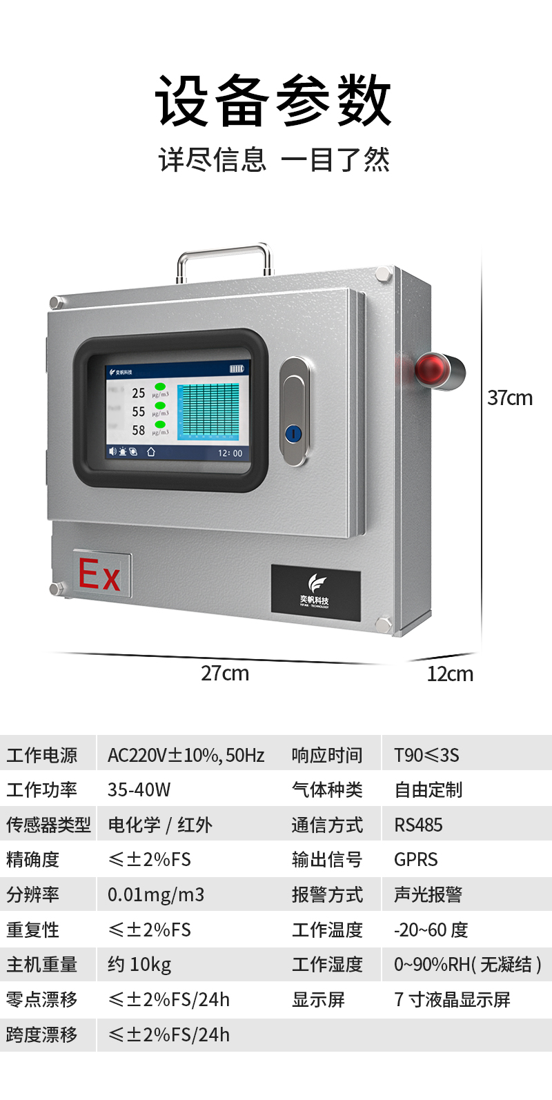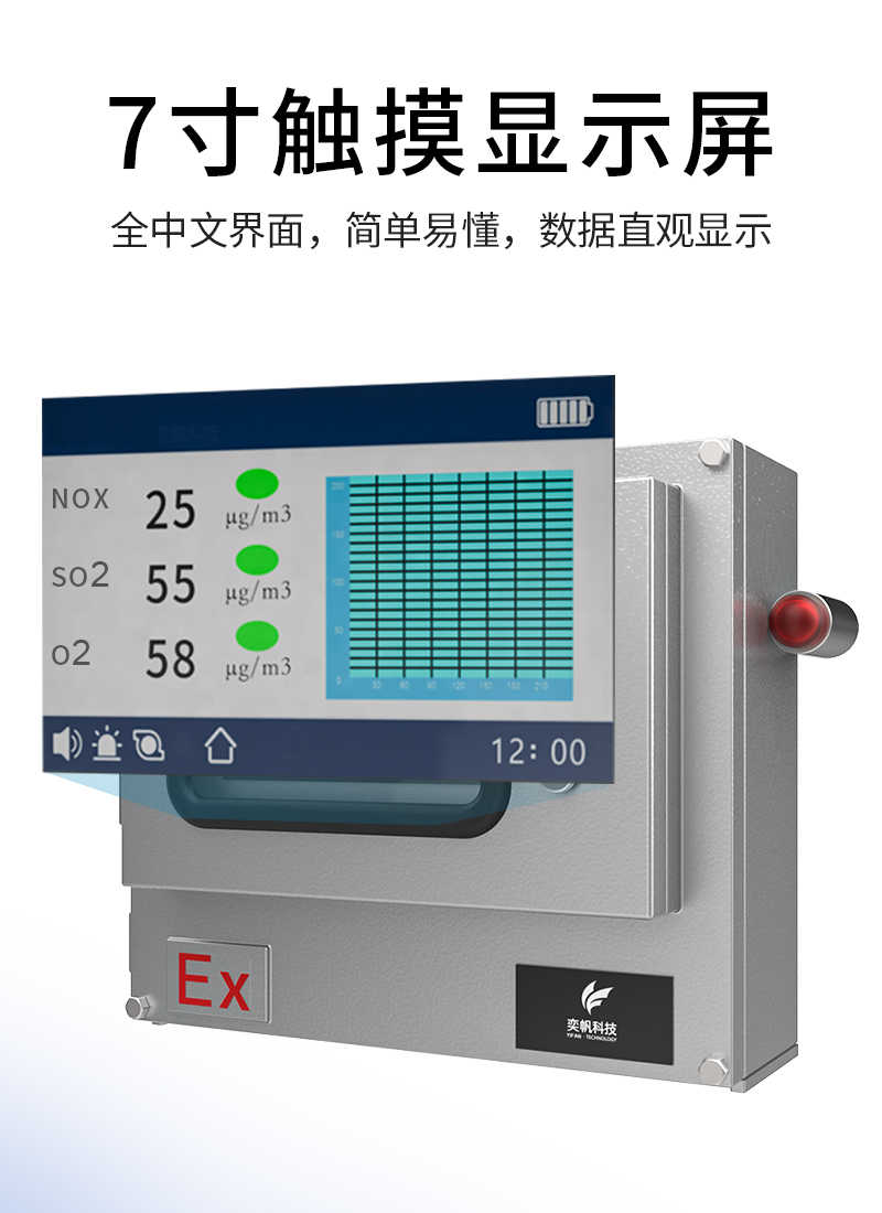 分析仪设计结合了防腐防爆外壳,满足了恶劣环境中的使用要求。产品采用泵吸式采样测量气体,配备优质进口传感器,具有较高的灵敏度及出色的重复性。仪器采用嵌入式微机控制,操作简单,功能齐全,可靠性高,具有多种自适应能力,使用图文液晶显示器,直观清晰。