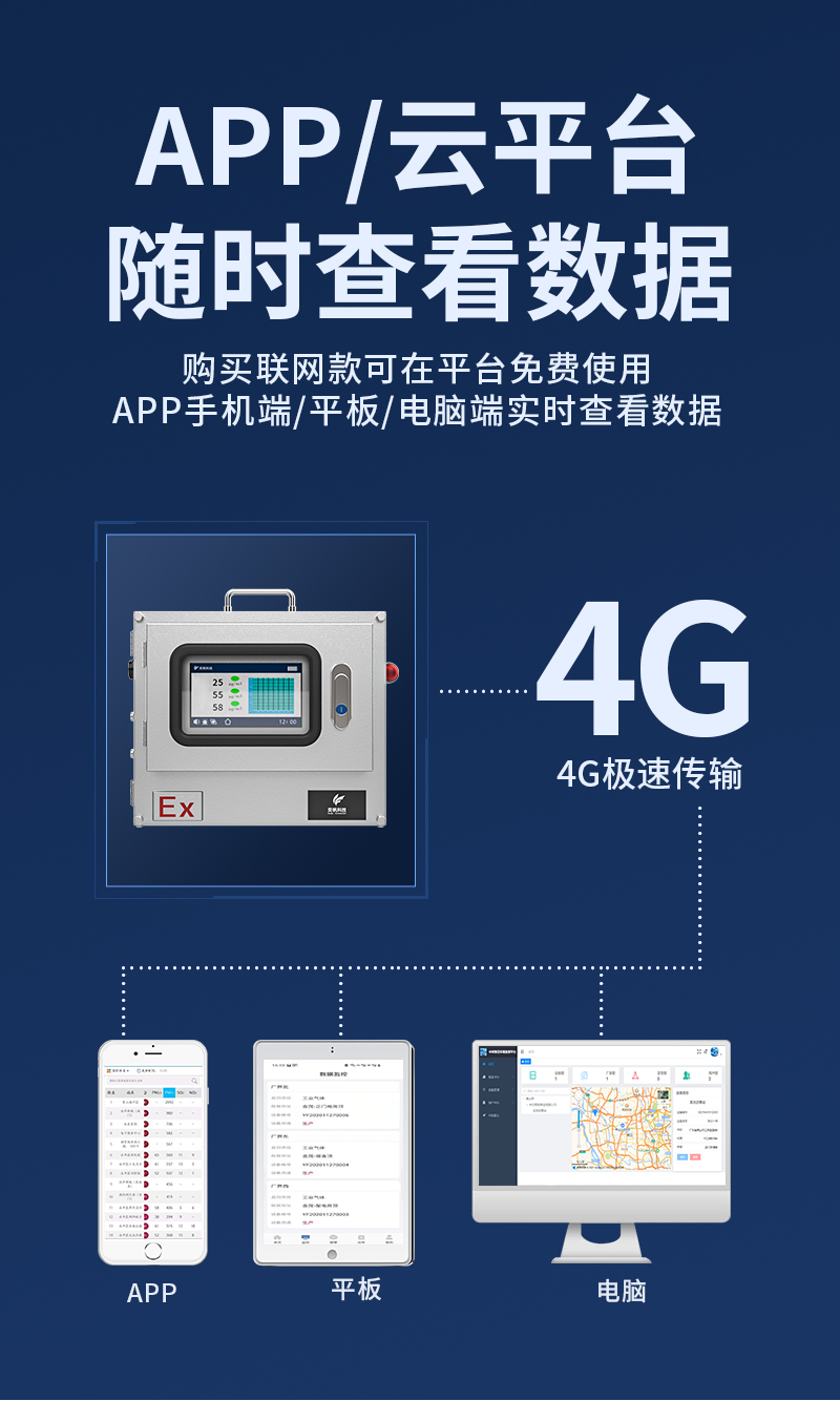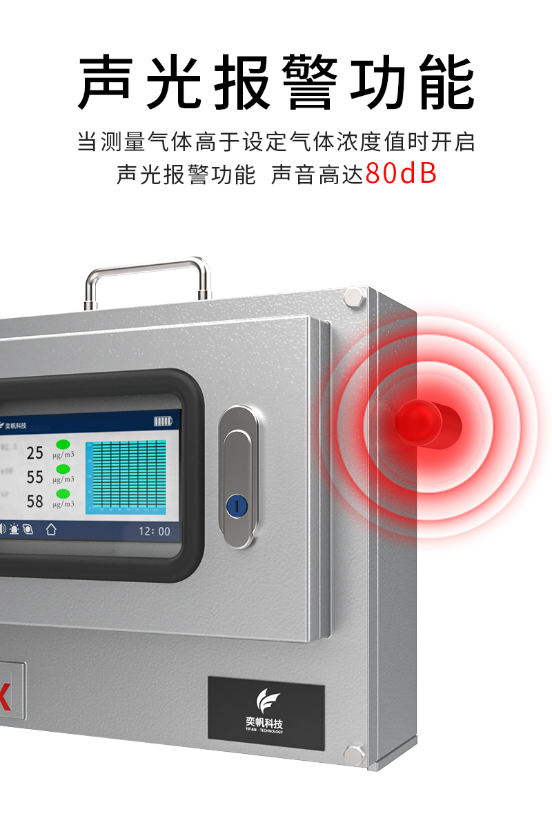 YF-900B奕帆科技防爆型便携式多功能分析仪,可以进行一氧化碳,硫化氢,氨气,氯化氢,二氧化硫,TVOC,PM2.5PM10,颗粒物等20多种有毒有害气体检测。原理当被测物质或者气体吸进入探头后,内部的传感器会第一时间发出感应。传感器根据气体浓度的高低会产生一定电量信号。该信号经过电路放大处理后,由CPU经过AD采样、温度补偿、智能计算后,输出精准的蓝牙信号、WIFI通讯信号,无线信号等。客户可通过采集这些信号,与手机,打印,云平台进行连接,数据存储或者定位。