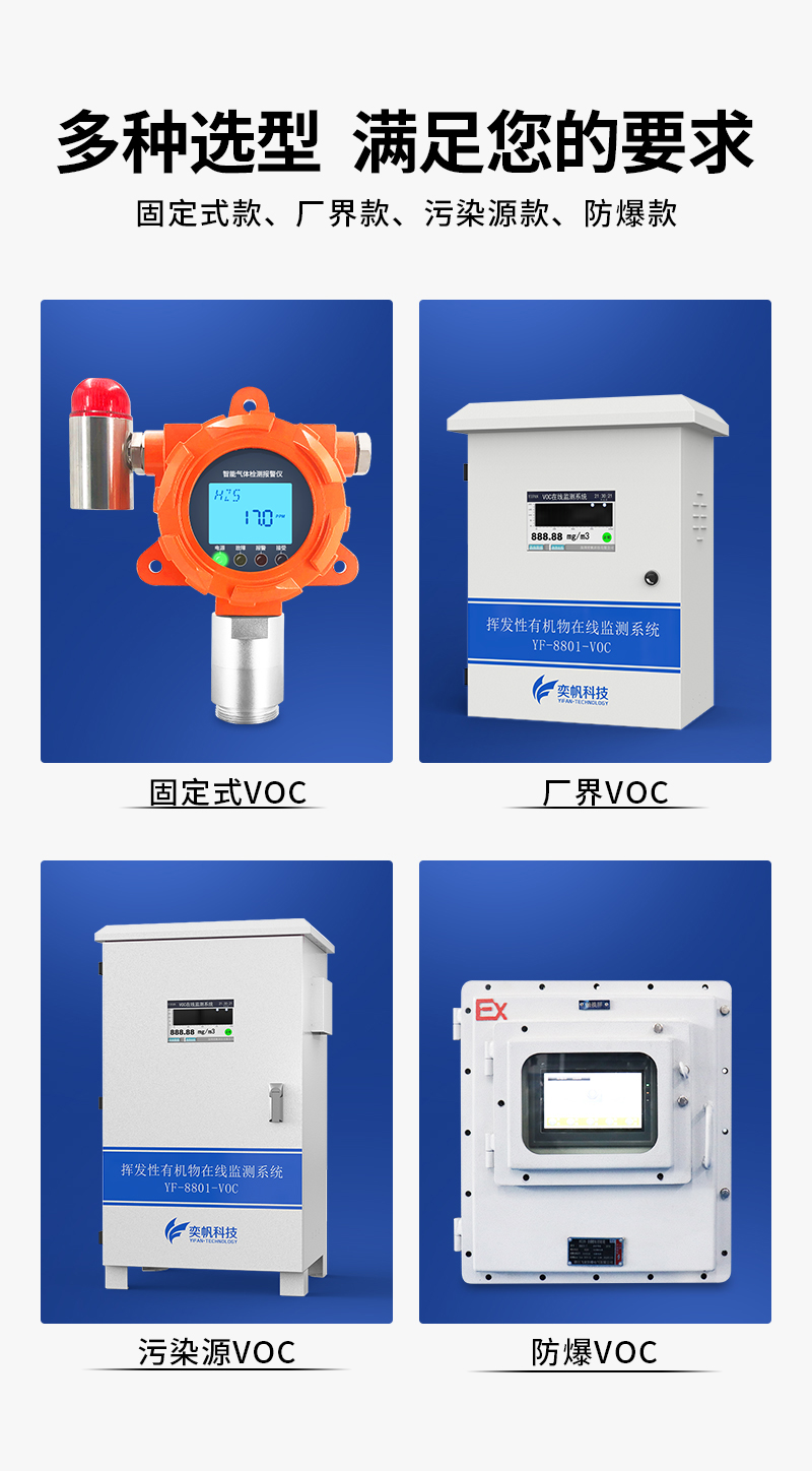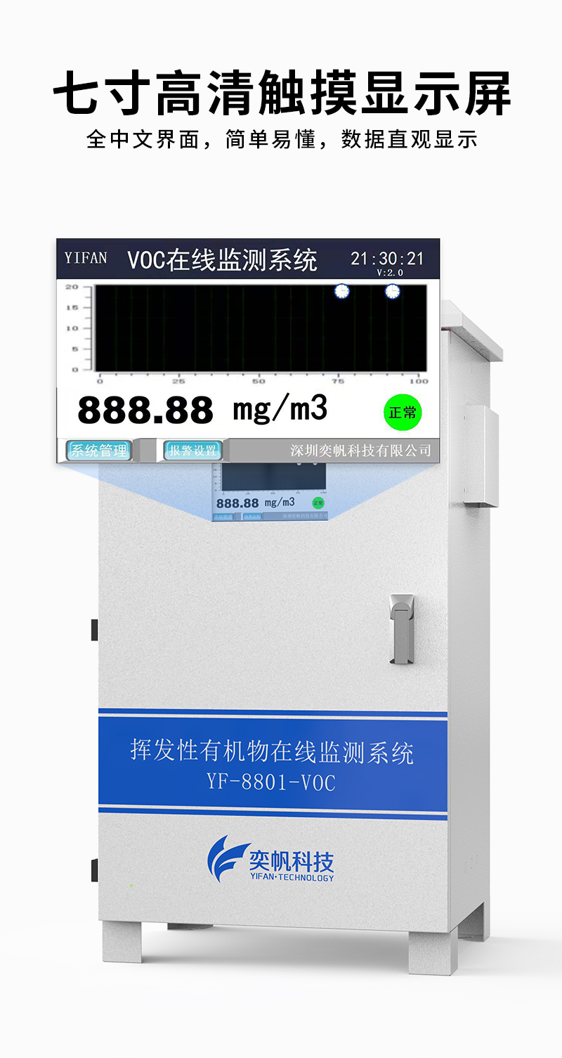 YF-8801-VOC奕帆科技TVOC在线监测系统,适用于连续监测无组织环境空气中的非甲烷总烃、苯、甲苯、二甲苯等挥发性有机物气体。产品选用进口原装(baseline)高精度PID光离子传感器,采用泵吸式采样监测,内置多重预处系统,包括除尘冷却除水过滤等,可以很好的保护传感器不受侵害,保证监测数据的准确稳定。可在app和云平台查看实时数据、历史数据、导出数据等同时具备24小时连续监测、超标报警、数据存储功能。产品已获得CCEP中国环境环保协会认证、CMA检测报告:软件著作权登记证书。