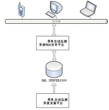 • 恶臭在线监测系统应用平台体系结构如下: