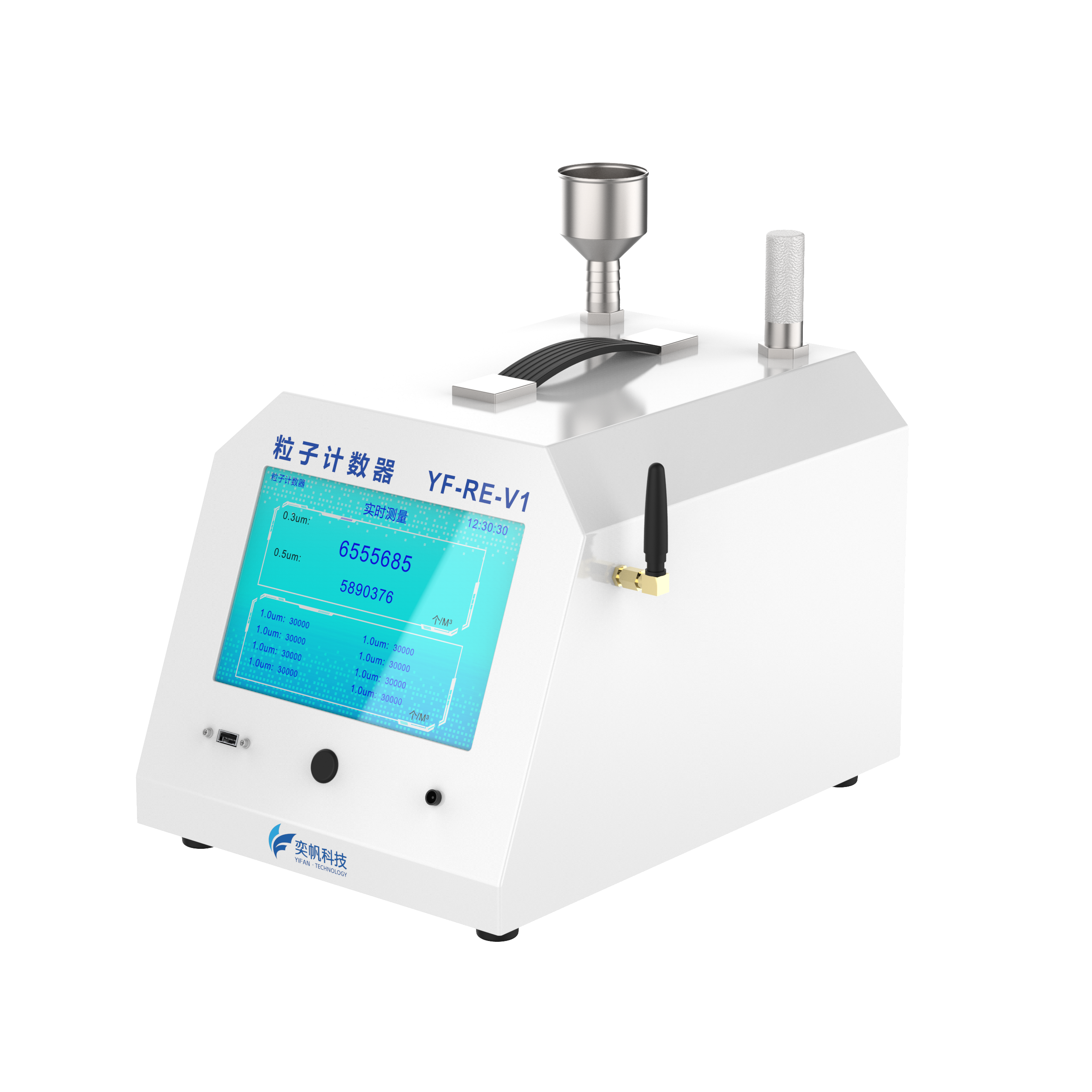 YF-RE-V1 YF-RE-V1尘埃粒子计数器是一种用于测量空气中微粒数量及其粒径分布的精密仪器,广泛应用于医药、电子、半导体、食品、航空航天等对环境洁净度要求极高的行业。它通过实时监测空气中的悬浮粒子浓度,为洁净室等级评定、生产过程控制和环境质量保障提供关键数据支持。