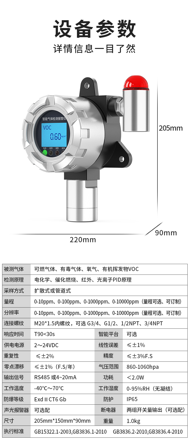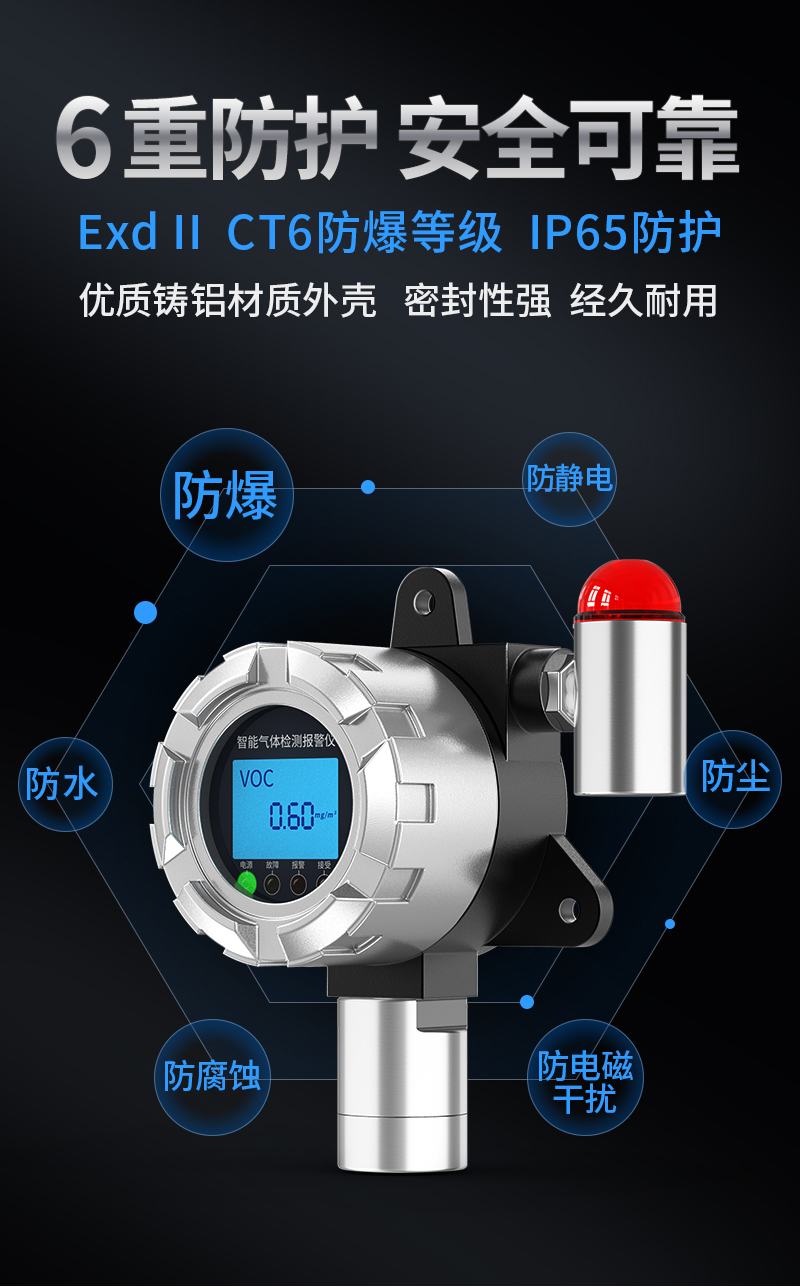 F-8500奕帆科技YF-8500系列防爆气体检测仪,可检测上百种气体(更换传感器)。适用于石油化工等存在易燃易爆或有毒气体的场所,可实时准确检测气体浓度。采用进口高精度传感器和微控制器技术,响应速度快,测量精度高稳定性和重复性好等优点防爆接线方式活用于各种危险场所,并兼容各种控制报警器,PLC,DCS等控制系统,可以同时实现现场报警预警,4-20mA标准信号输出,继由器开关量输出,易示各项技术指标和显示浓度值,同时具有多种极的电路保护功能,有效防止各种人为因素,不可控因素导致的仪器损坏。