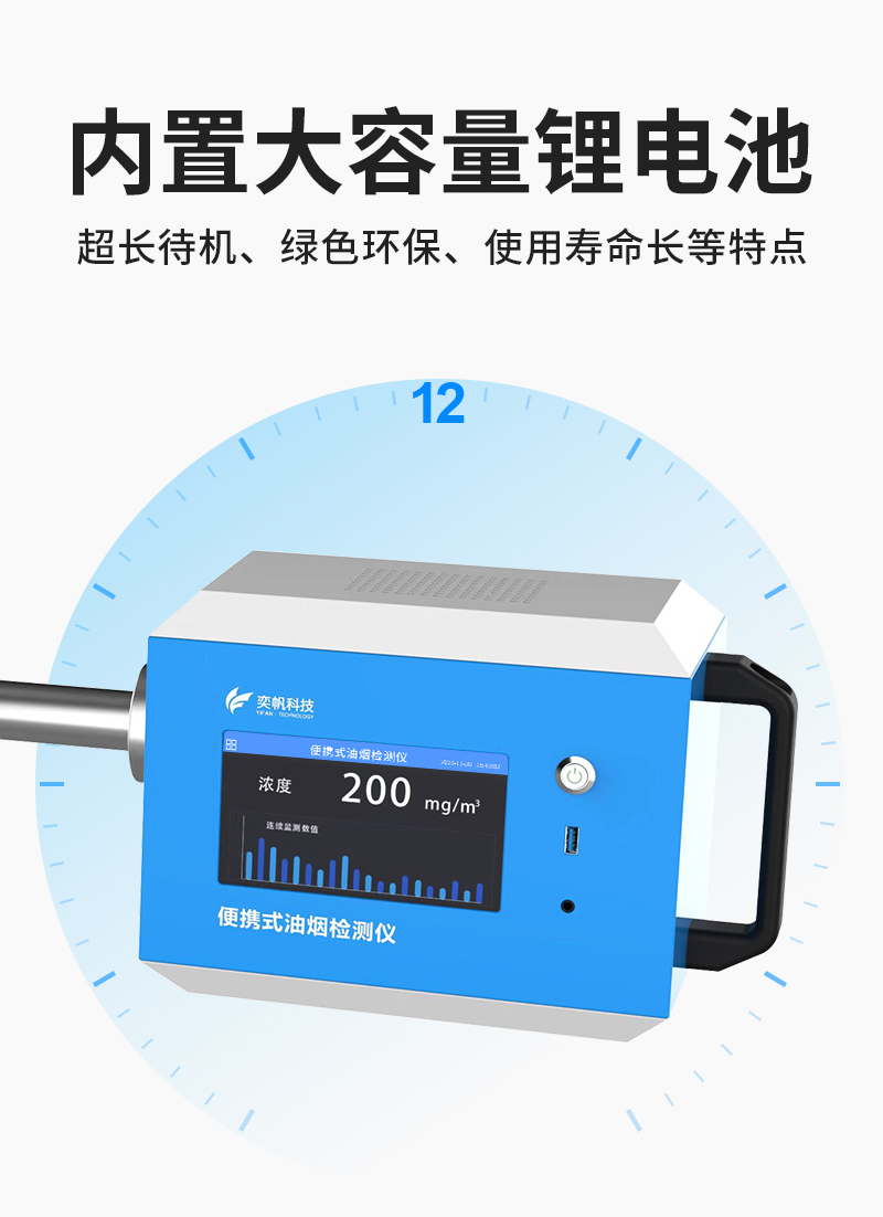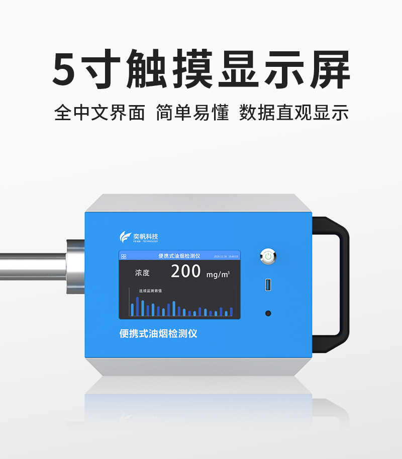 YF-8200-YY奕帆便捷式油烟检测仪采用激光散射法检测,适用于烟道、烟等固定污染源中的油烟浓度的测量,以及烟气的温度、动压、静压等油烟参数和环境大气压、环境温度参数测量,可同时测量油烟、颗粒物、非甲烷总烃的浓度。产品性能稳定、操作方便、小型便携、一体式直读,适用于餐厅、饭店、机关食堂等单位排放的烹饪油烟浓度、颗粒物、非甲烷总烃等参数的检测。