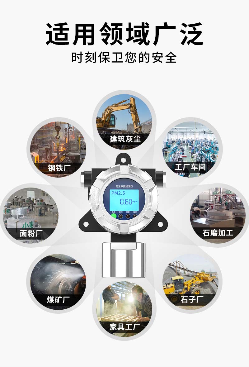 YF-8500-PM奕帆科技YF-8500-PM防爆粉尘浓度检测仪,适用于工厂车间中的粉尘浓度实时准确检测,采用进口激光传感器和微控制器技术,响应速度快,测量精度高,稳定性和重复性好等优点。防爆接线方式活用于各种危险场所,并兼容种控制报警器,PLC,DCS等控制系统,可以同时实现现场报警预警,4-20mA标准信号输出,继由器开关量输出,易示各项技术指标和显示浓度值,同时具有多种极的电路保护功能,有效防止各种人为因素,不可控因素导致的仪器损坏。
