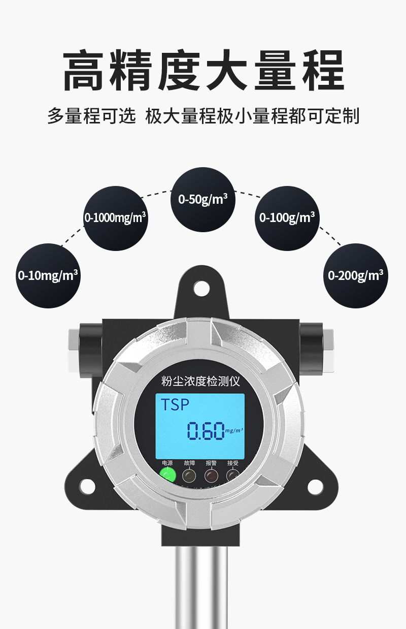 产品通过ExdIICT6防爆认证,适用于石油化工、煤矿冶金等高危场所的粉尘浓度实时监测。设备具有4-20mA/RS485标准信号输出,可无缝对接PLC、DCS等控制系统,实现粉尘浓度的远程监控和智能预警。