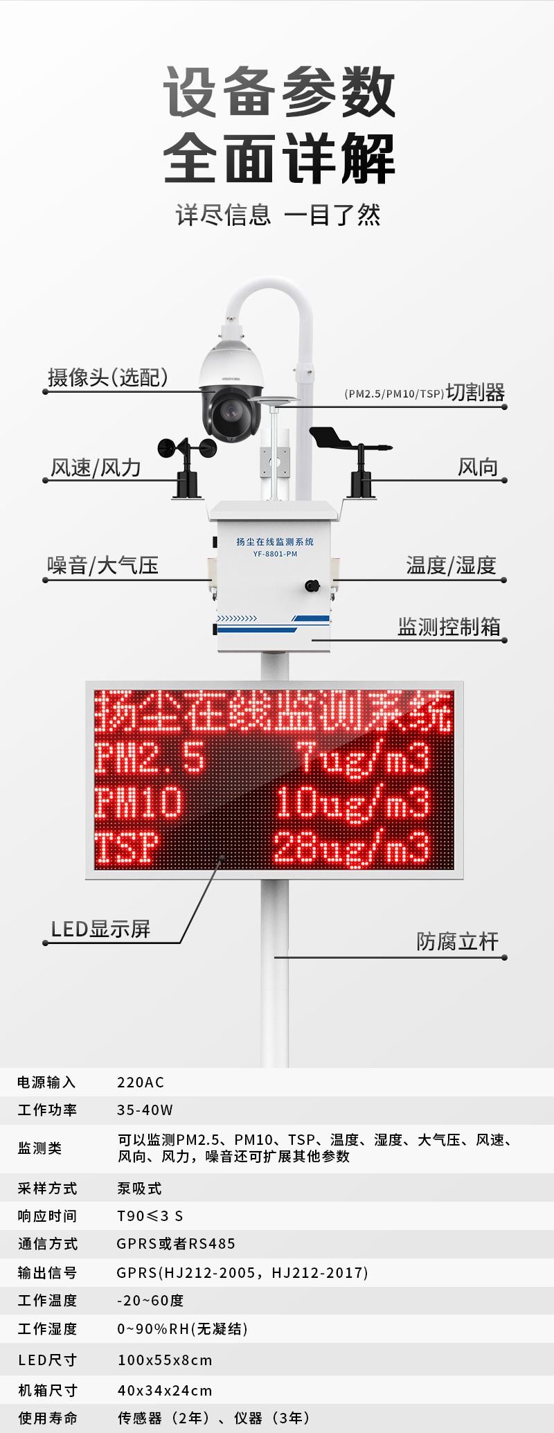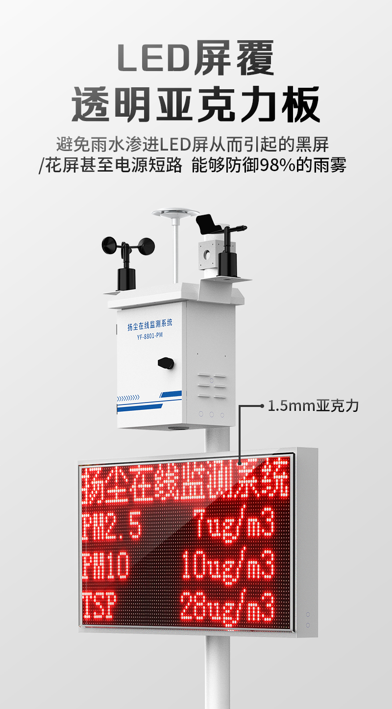 YF-8500-TSPTSP质量监测系统由各类环境传感器、数据采集主控、无线通讯设备、供电设备、软件平台组成。可用于测量 PM2.5、PM10、TSP 等各类环境空气数据。系统采用模块化设计,可根据不同地域环境状况,对环境各要素灵活增加或减少相应的模块和传感器,任意组合,方便快捷的满足各种用户需求。数据通过无线/GPRS上传至云管理平台,运用大数据智能动态分析、及时报警、精准锁源,强化监管体系。
