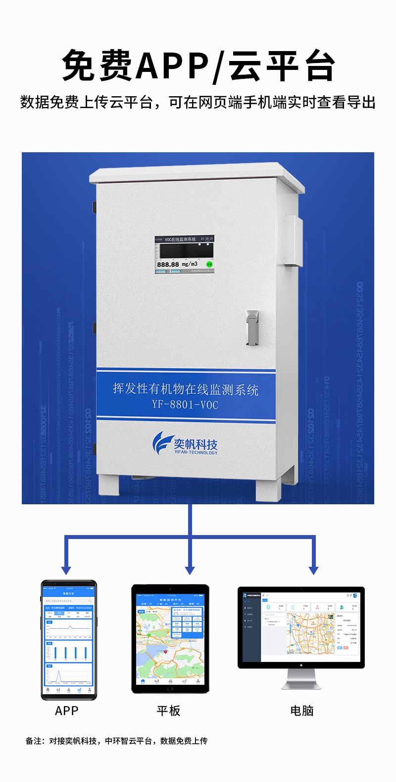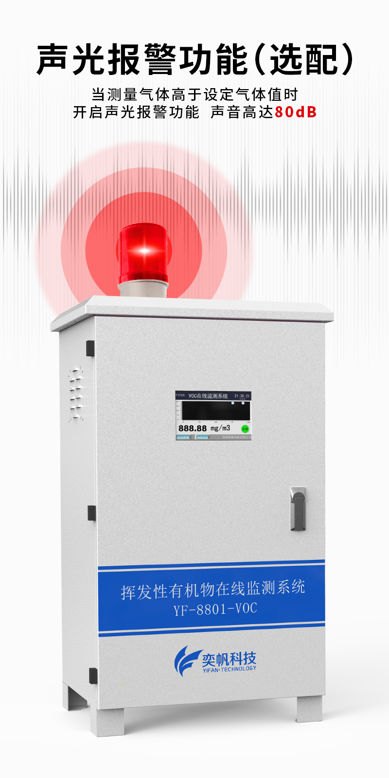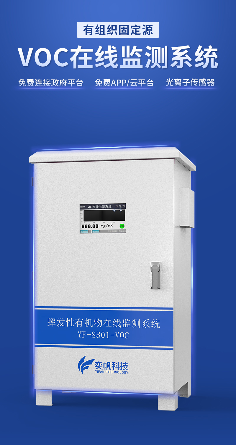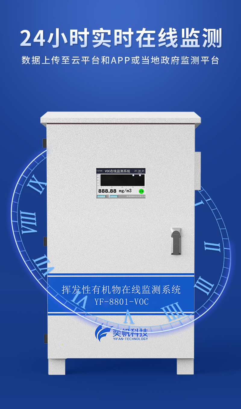 YF-8801-VOC奕帆科技TVOC在线监测系统,适用于连续监测无组织环境空气中的非甲烷总烃、苯、甲苯、二甲苯等挥发性有机物气体。产品选用进口原装(baseline)高精度PID光离子传感器,采用泵吸式采样监测,内置多重预处系统,包括除尘冷却除水过滤等,可以很好的保护传感器不受侵害,保证监测数据的准确稳定。可在app和云平台查看实时数据、历史数据、导出数据等同时具备24小时连续监测、超标报警、数据存储功能。产品已获得CCEP中国环境环保协会认证、CMA检测报告:软件著作权登记证书。