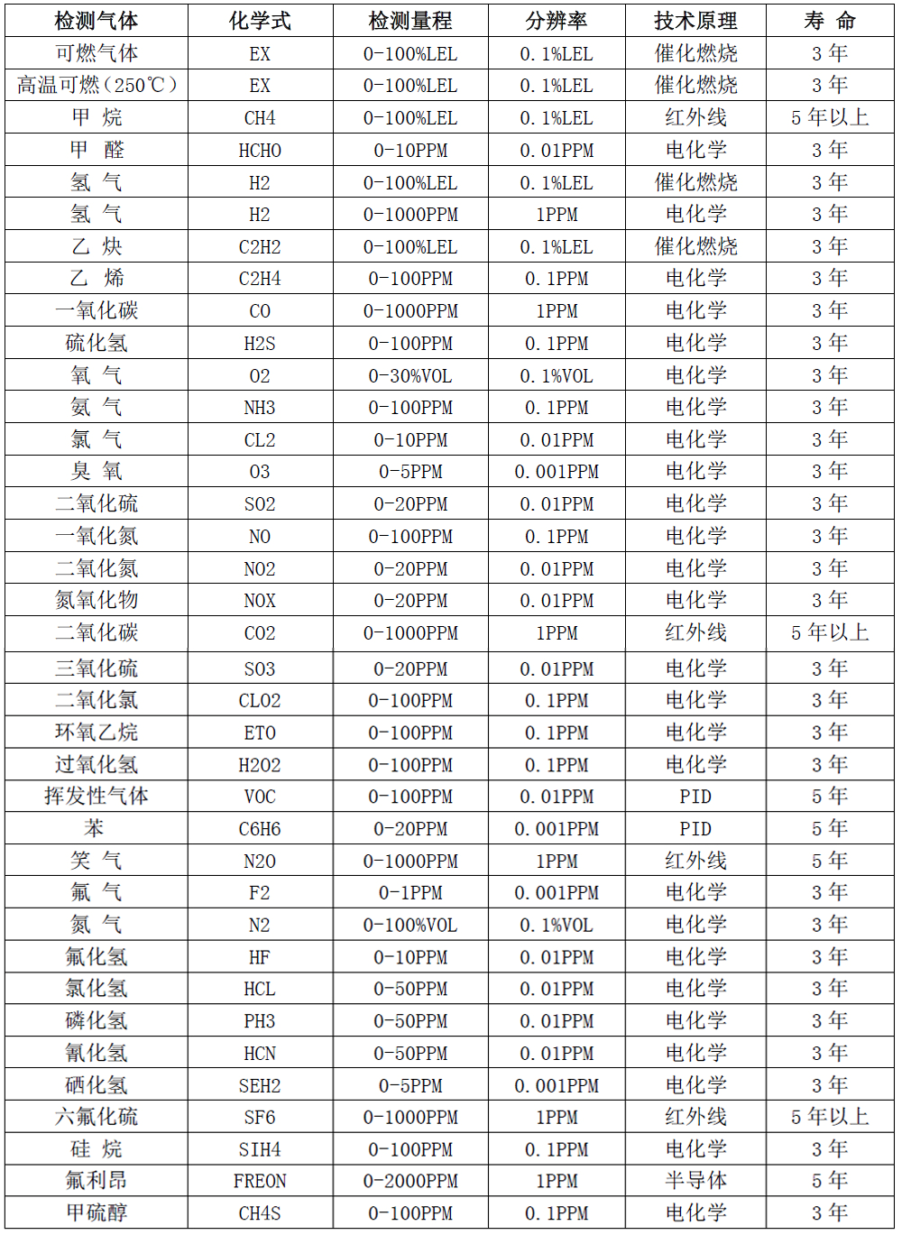 备注:上千种气体类型可供选,如有其它特殊气体需求请联系我司销售人员。
