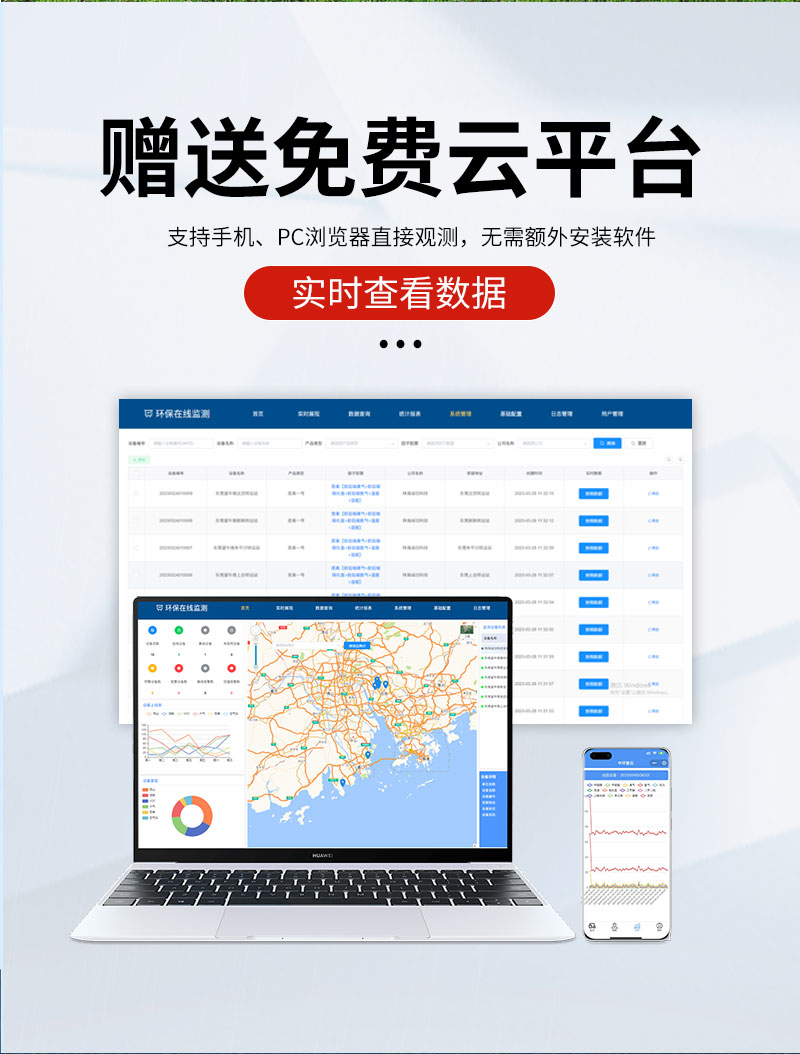 可在app和云平台查看实时数据、历史数据、导出数据等同时具备24小时连续监测、超标报警、数据存储功能。