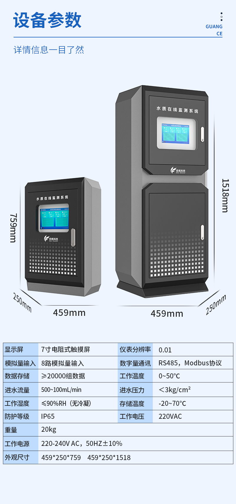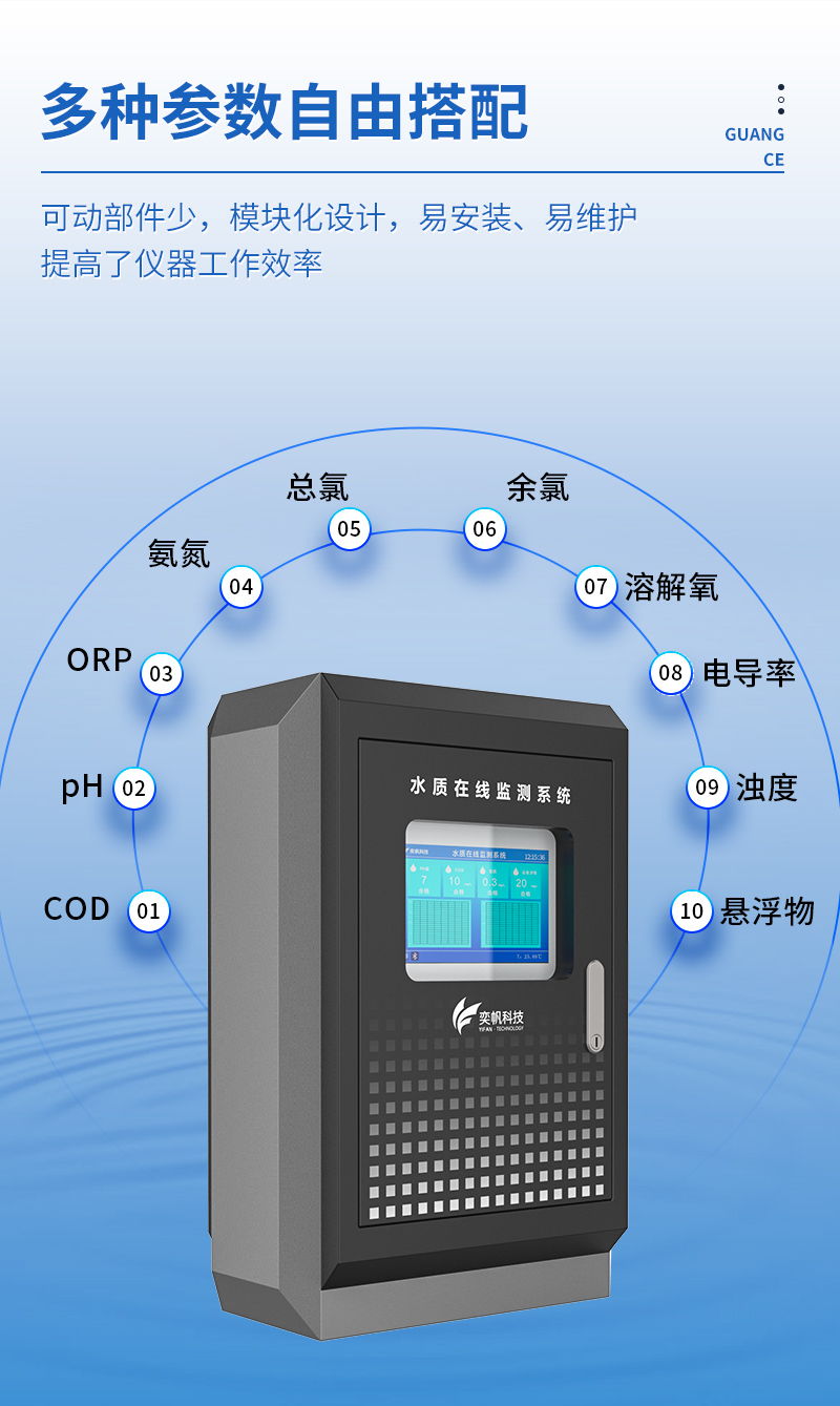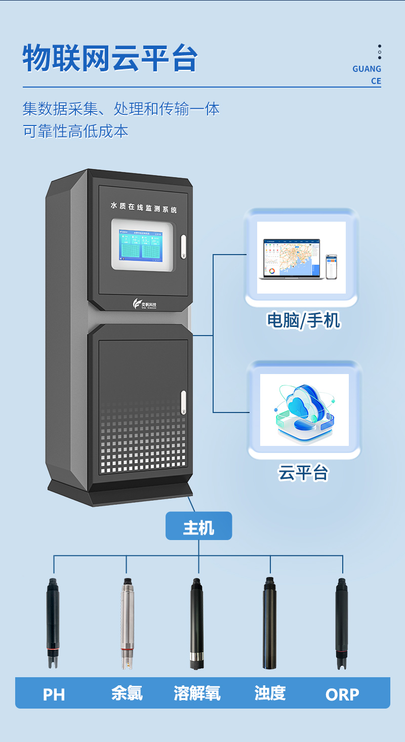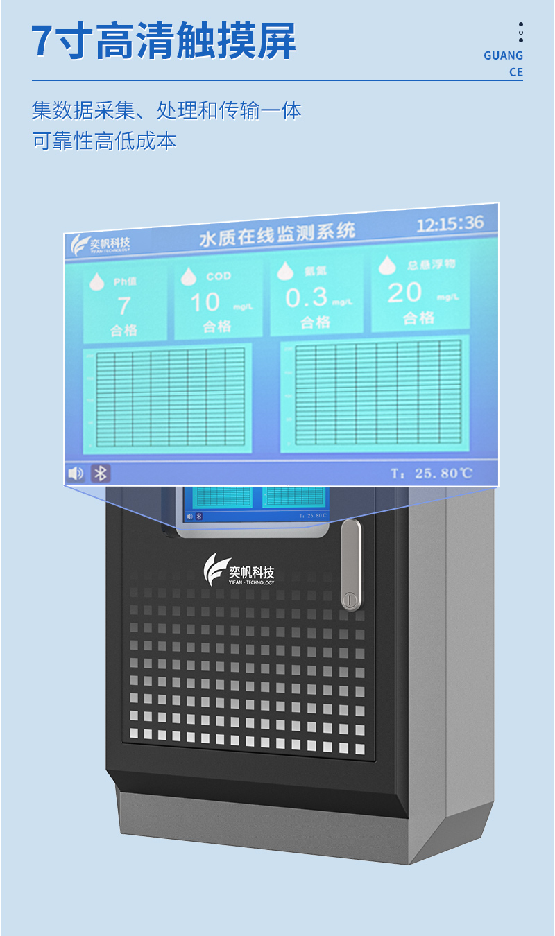 奕帆科技系列水质在线监测系统是一种先进的自动化监测设备,能够实时、连续地监测水体中的多种参数,如电导率、pH值、流量、悬浮物、温度、溶解氧、浊度、离子类、余氯、氨氮、二氧化氯等。系统采用进口高精度传感器,结合智能分析算法,确保测量数据的准确性和可靠性。这些传感器通常具备高精度、高稳定性和抗干扰能力,能够在复杂环境中稳定工作。 该系统广泛应用于各种高危场所和环境监测场景,可实现连续监测并选配报警控制功能,采用声光报警装 置,能够在参数异常时及时发出警报。此外,系统还可通过物联网技术实现远程监控和数据传输,便于用户实时掌握水质状况。 YF-8801-WT系列水质在线监测系统的优势在于其自动化程度高、监测效率高、数据采集准确,能够为水资源管理和环境保护提供重要支持。