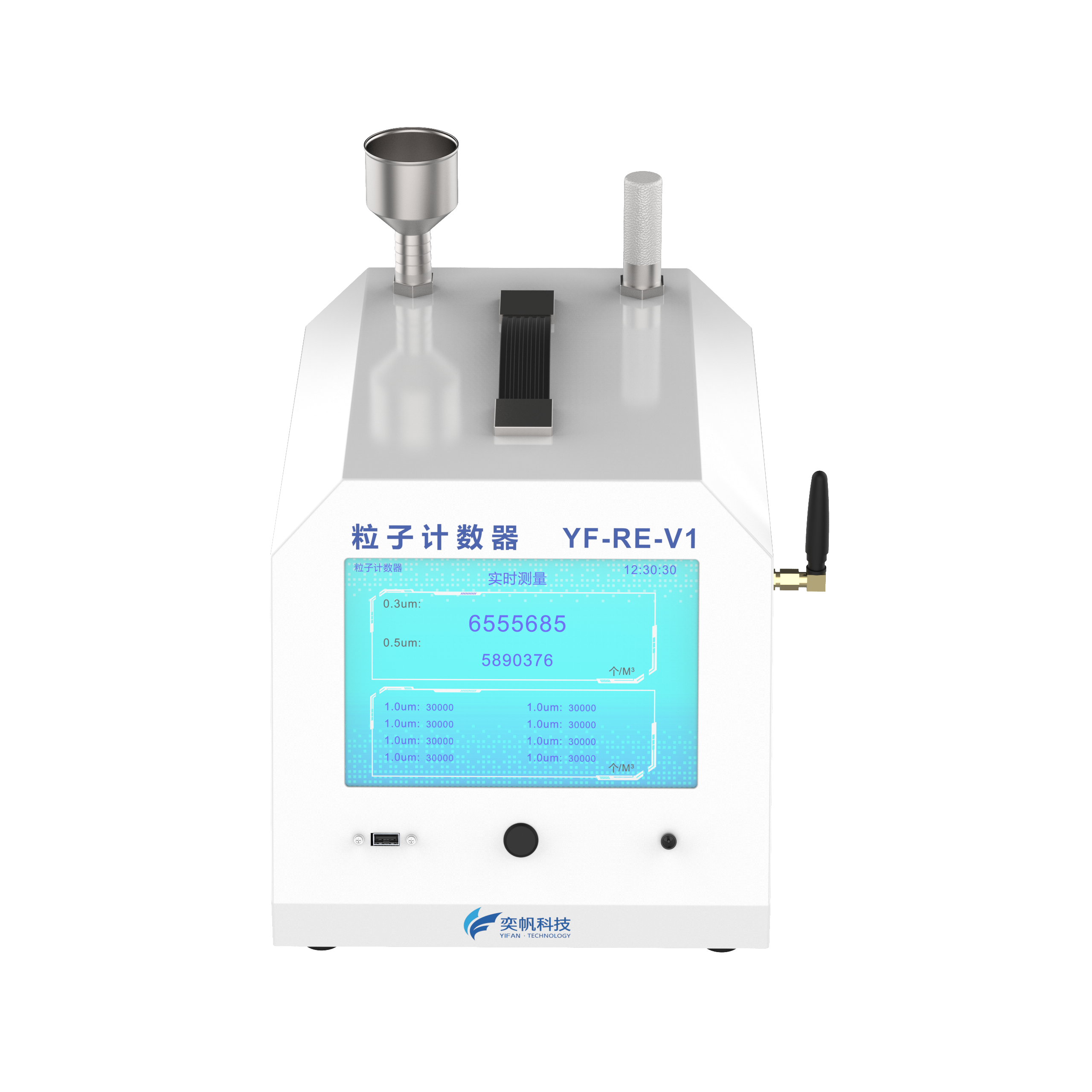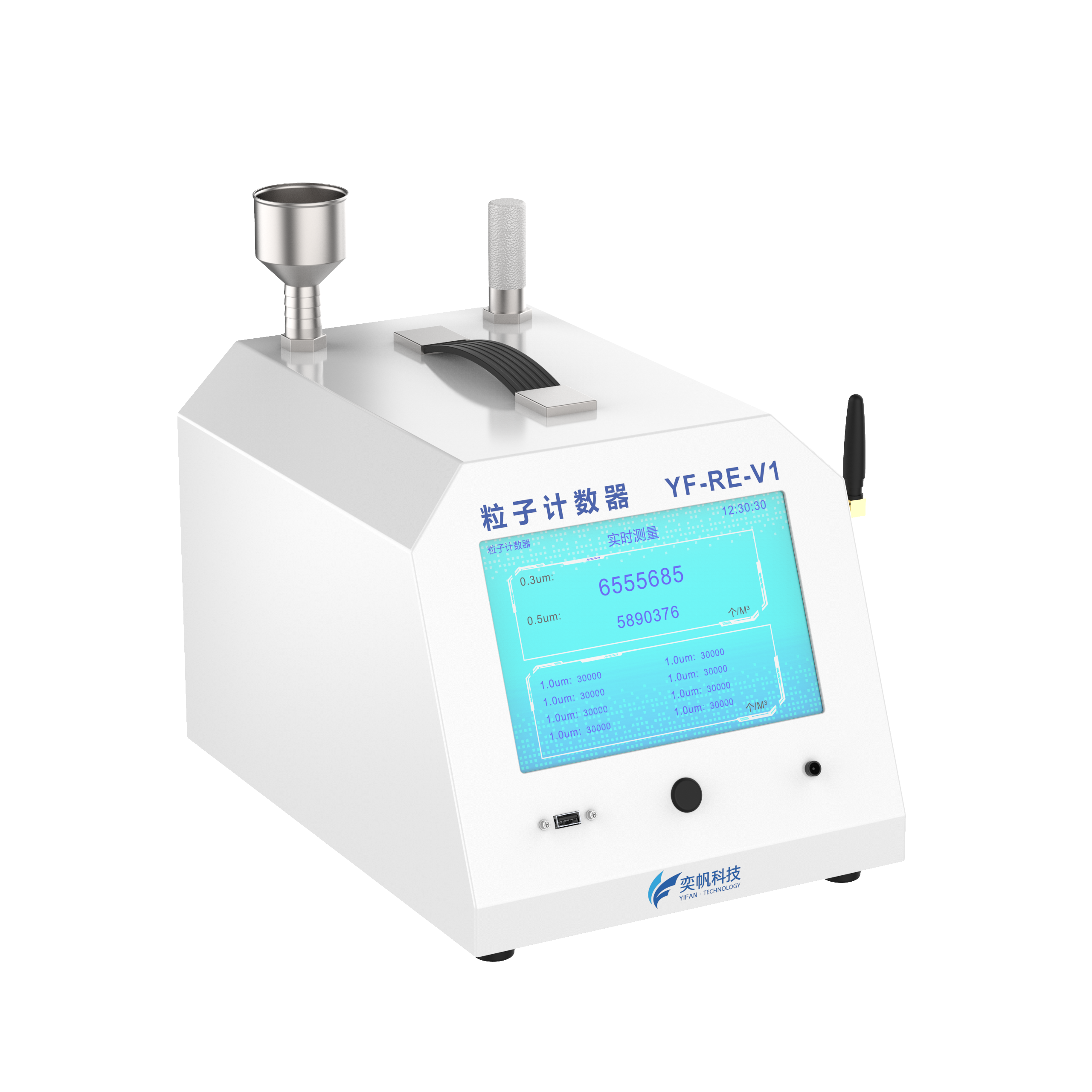 YF-RE-V1 YF-RE-V1尘埃粒子计数器是一种用于测量空气中微粒数量及其粒径分布的精密仪器,广泛应用于医药、电子、半导体、食品、航空航天等对环境洁净度要求极高的行业。它通过实时监测空气中的悬浮粒子浓度,为洁净室等级评定、生产过程控制和环境质量保障提供关键数据支持。