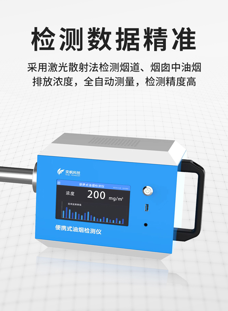 YF-8200-YY奕帆便捷式油烟检测仪采用激光散射法检测,适用于烟道、烟等固定污染源中的油烟浓度的测量,以及烟气的温度、动压、静压等油烟参数和环境大气压、环境温度参数测量,可同时测量油烟、颗粒物、非甲烷总烃的浓度。产品性能稳定、操作方便、小型便携、一体式直读,适用于餐厅、饭店、机关食堂等单位排放的烹饪油烟浓度、颗粒物、非甲烷总烃等参数的检测。